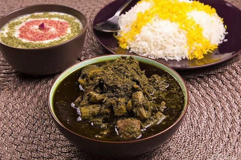 سبزی مخصوص این خورش، ترکیبی است از برگ کرفس، جعفری و به میزان نصف آن، نعناع.