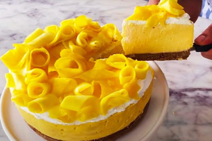 مراحل تهیه چیز کیک انبه