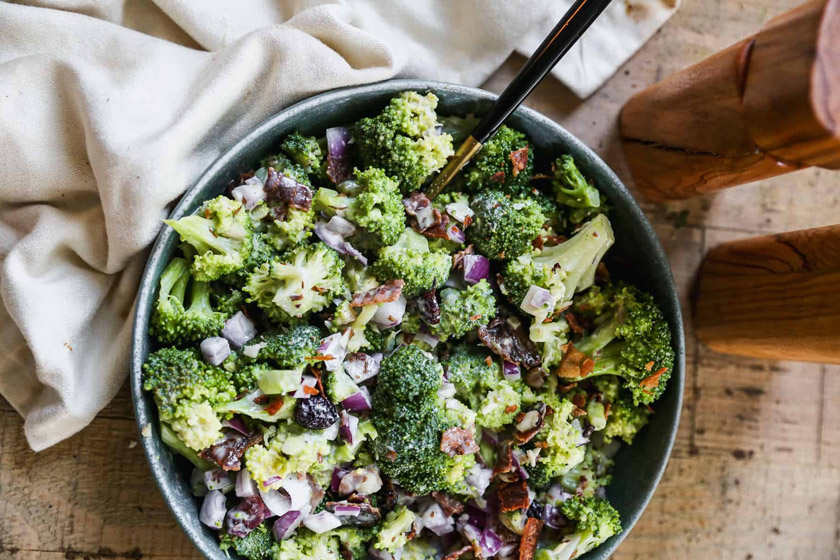 این سالاد خوش‌طعم و متفاوت با بروکلی خام، بیکن، پنیر و سسی تند و دودی تهیه می‌شود. بافت ترد، طعم عالی و رنگ‌های متنوع که در این سالاد استفاده شده‌اند، آن را به انتخابی عالی برای پیش‌غذا یا همراه غذا تبدیل کرده است. در ادامه مراحل تهیه آن را بیان خواهیم کرد تا بتوانید به‌راحتی آن را در خانه تهیه کنید.